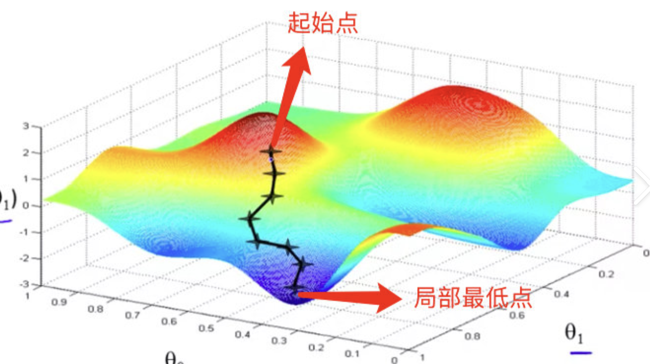 通过这两个图的对比,你可以简单将偏导数理解为 "某一个方向的梯度" 第二张图片中,我们如果要移动到局部最低点