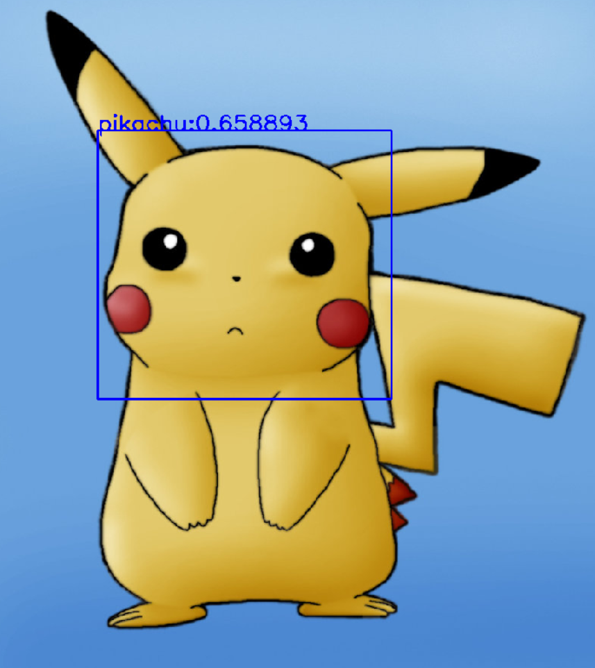 这个领域里面,YOLO算法是非常强的存在,YOLO(You Only Look Once)是一种实时目标检测系统,通过单个神经网络预测目标边界框和类别,英文名非常的霸气,译为 "你只需要看一次",当然,它的效果配的上它的名字,如果你想深入学习YOLO,那么b站上面有着非常多的教程,YOLO的训练框架也是开源的,没有什么使用难度,效果如下,检测出下面的图片是 pikachu