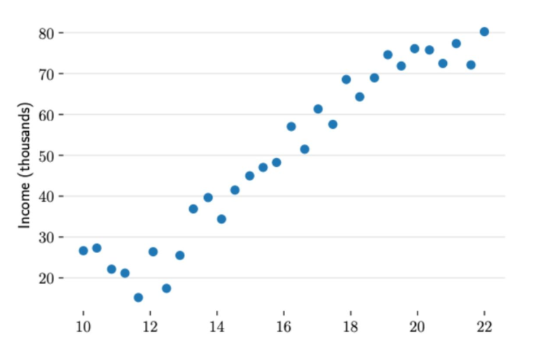这是一幅散点图,散乱的数据,和我们实际生活中的数据一样,我们的目的便是从这些点之间进行拟合