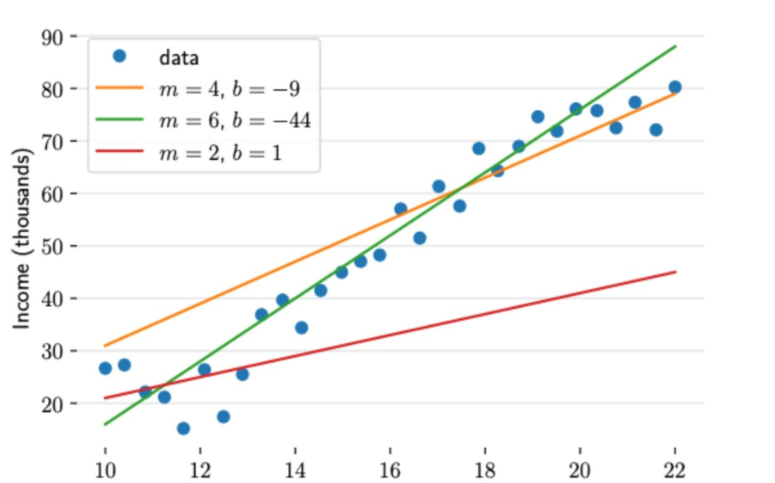 这么多条直线,我们如何判断那条直线是最佳选项呢,我们需要一个方法或者说标准